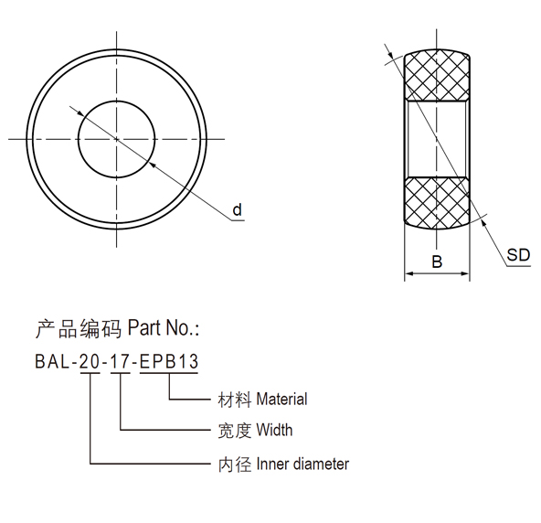 ● 標準球體材料EPB13,可選:FDA等級球體EPB6、高溫250℃球體EPB10