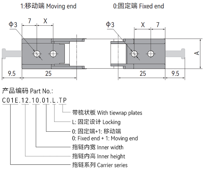 *A1|A2|A3|A4訂購(gòu)預(yù)裝配拖鏈請(qǐng)注明安裝方式