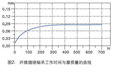 軸承磨損的影響因素有承載、運(yùn)動(dòng)方式、速度以及相配軸的表面粗糙度等;圖2說明了纏繞軸承在50MPa載荷、室溫的條件下?lián)u擺運(yùn)動(dòng)中的磨損情況。根據(jù)圖表我們可以看出在最初的時(shí)