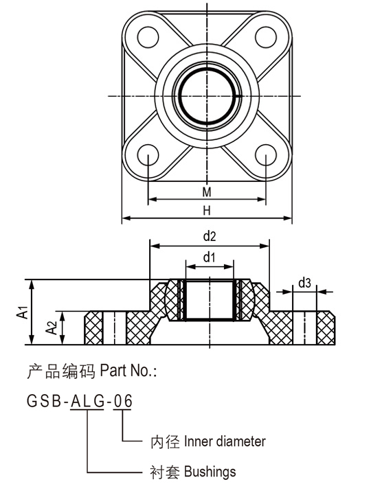 ● 耐磨塑料球體內(nèi)孔安裝ALG高速滑動(dòng)軸承;