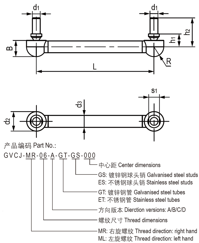 ● 球頭銷材料可選鍍鋅鋼或不銹鋼;