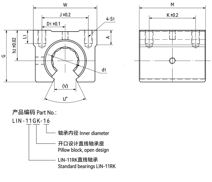 ●內(nèi)部安裝2個(gè)LIN-11RK開(kāi)口型直線軸承