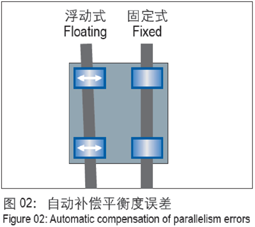 在有兩根軸或?qū)к壠叫惺褂玫闹本€運(yùn)動系統(tǒng)里,我們建議其中一邊安裝浮動直線軸承。無論是水平安裝,垂直安裝還是側(cè)向安裝,這種固定軸 承加浮動軸承的合理結(jié)構(gòu)適合每個方向。這種安裝方式可以避免由于兩根軸或?qū)к壍钠叫卸绕顚?dǎo)致的卡死現(xiàn)象。這是由浮動軸承通過對可能 產(chǎn)生平行度偏差的方向做一定范圍的游動來實現(xiàn)的。